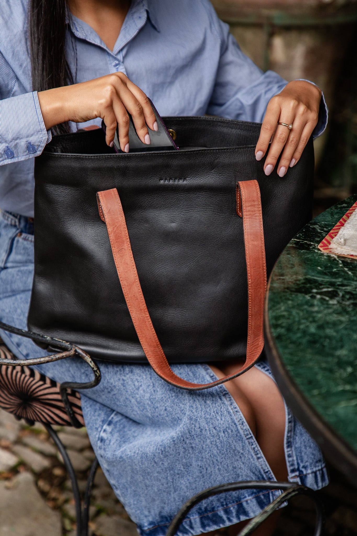 Its open, minimalist silhouette makes it ideal for daily essentials, workdays, and laptop carry, while the soft structure allows the leather to move naturally with you. Finished with contrasting brown leather straps, it balances strength and warmth, giving it a timeless, lived-in feel that only improves with age.