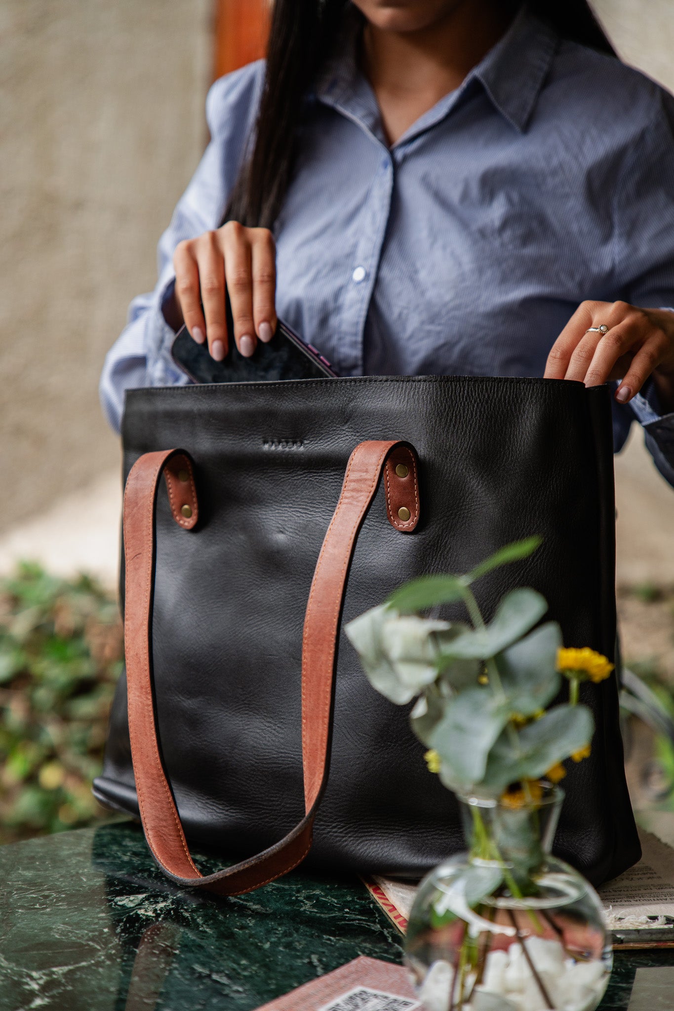 The Black Rustic Tote is designed for everyday use—spacious, durable, and effortlessly refined. Crafted from full-grain black leather, this tote is made to carry what you need without feeling oversized or rigid.